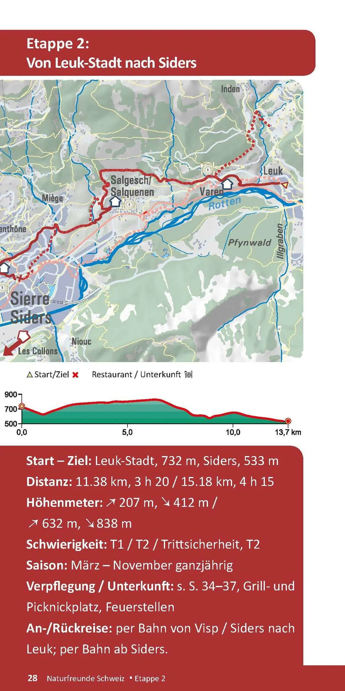 An-/Rückreise: per Bahn von Visp / Siders nach Leuk; per Bahn ab Siders